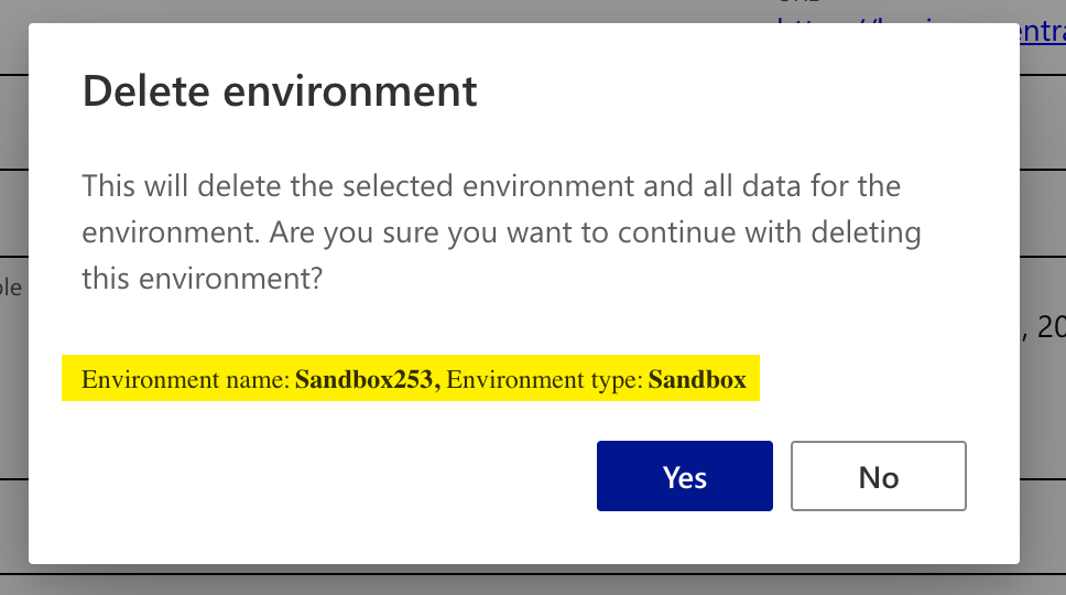 Confirm you are deleting the correct environment. Ensure you do not accidentally delete your Production environment!