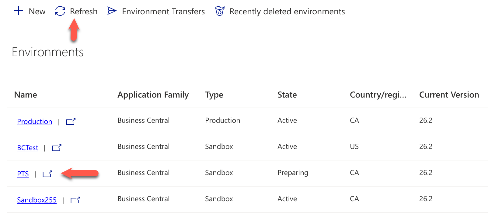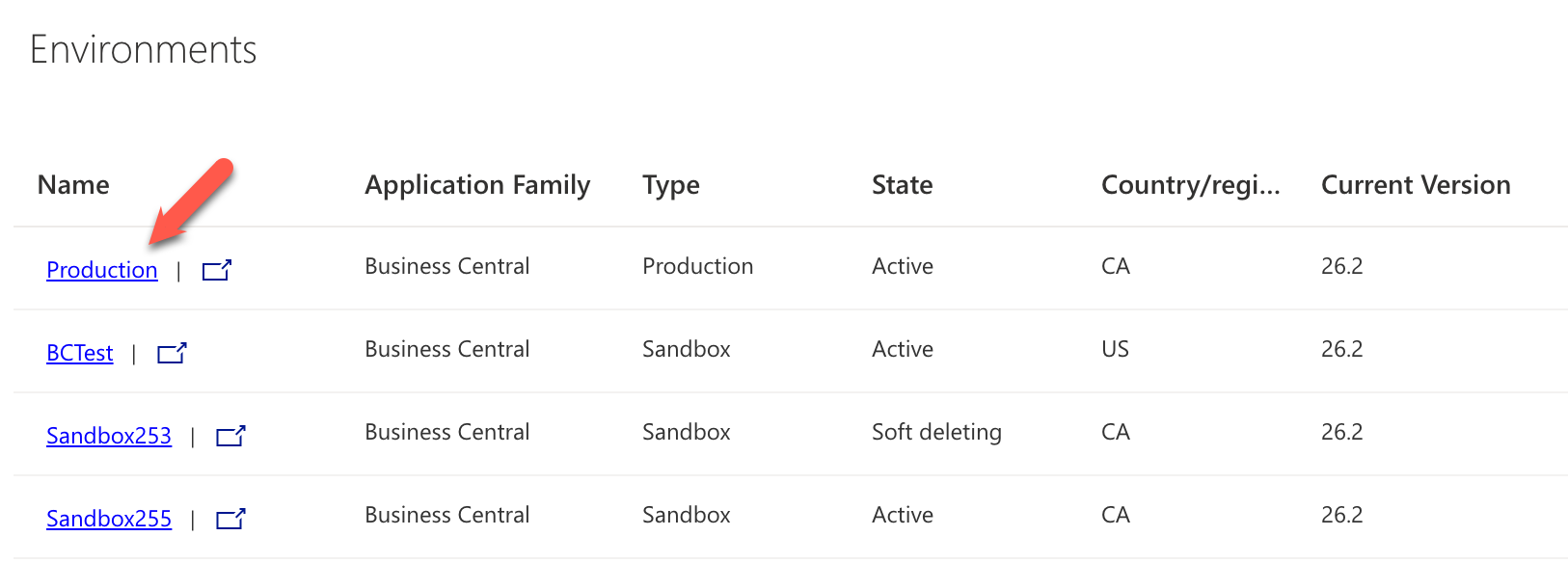 7. Click on Environments in the navigation pane to get back to the list of all the environments.