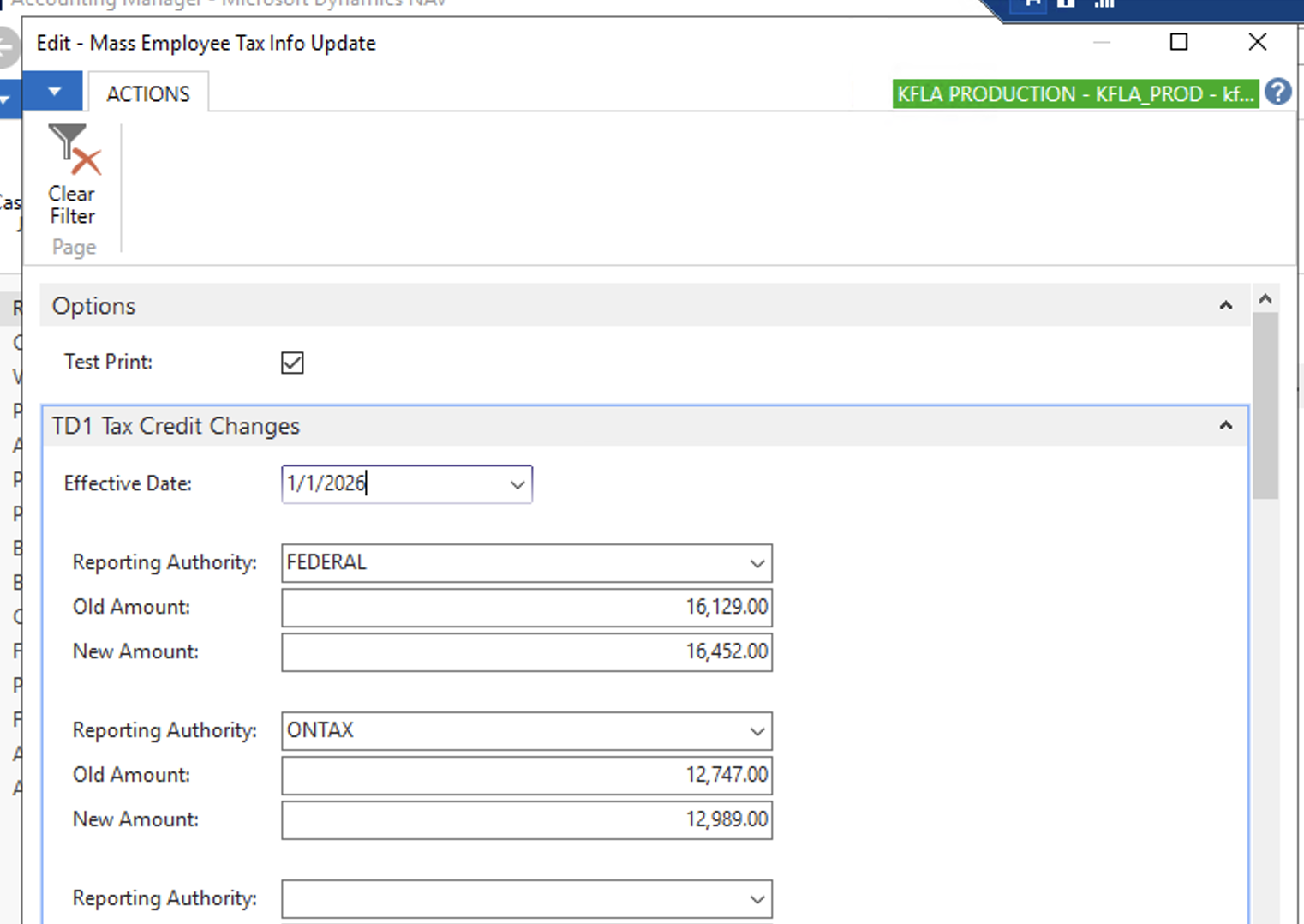 - Modify manually any employees Tax Auth. Info where the TD1 Form Claim Amount differs from the Basic Personal Amount.