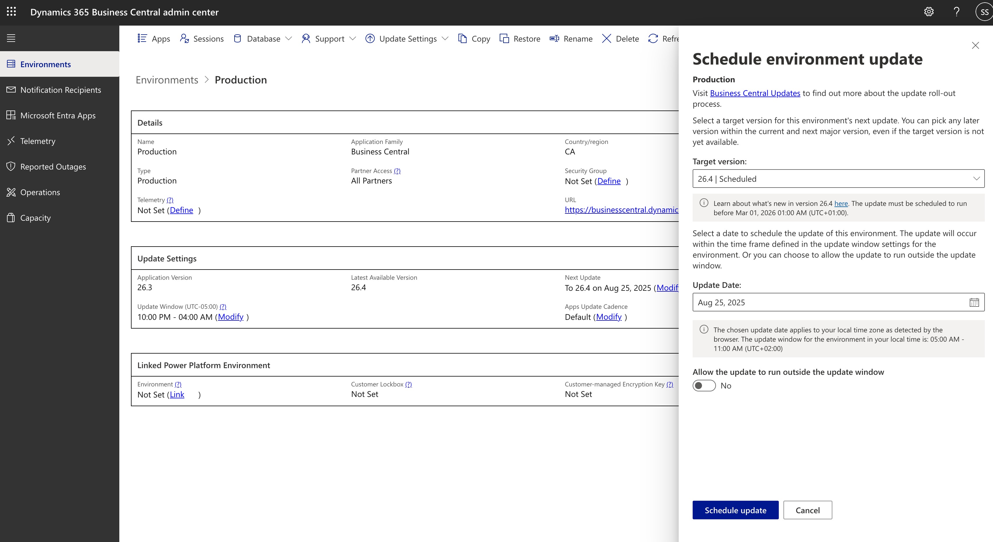 After the upgrade completes, go back into the Business Central Admin Center and check the Current Version value